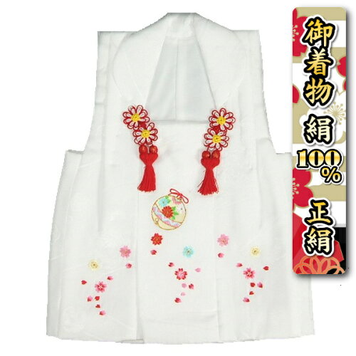 七五三 正絹 被布 着物 3歳 白 刺繍鈴 桜 ひな祭り お正月 日本製