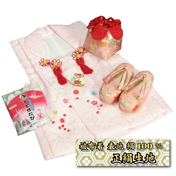七五三 3歳から5歳用 正絹被布草履きんちゃくセット 草履ピンク 被布ピンク地 足袋付きセット 日本製